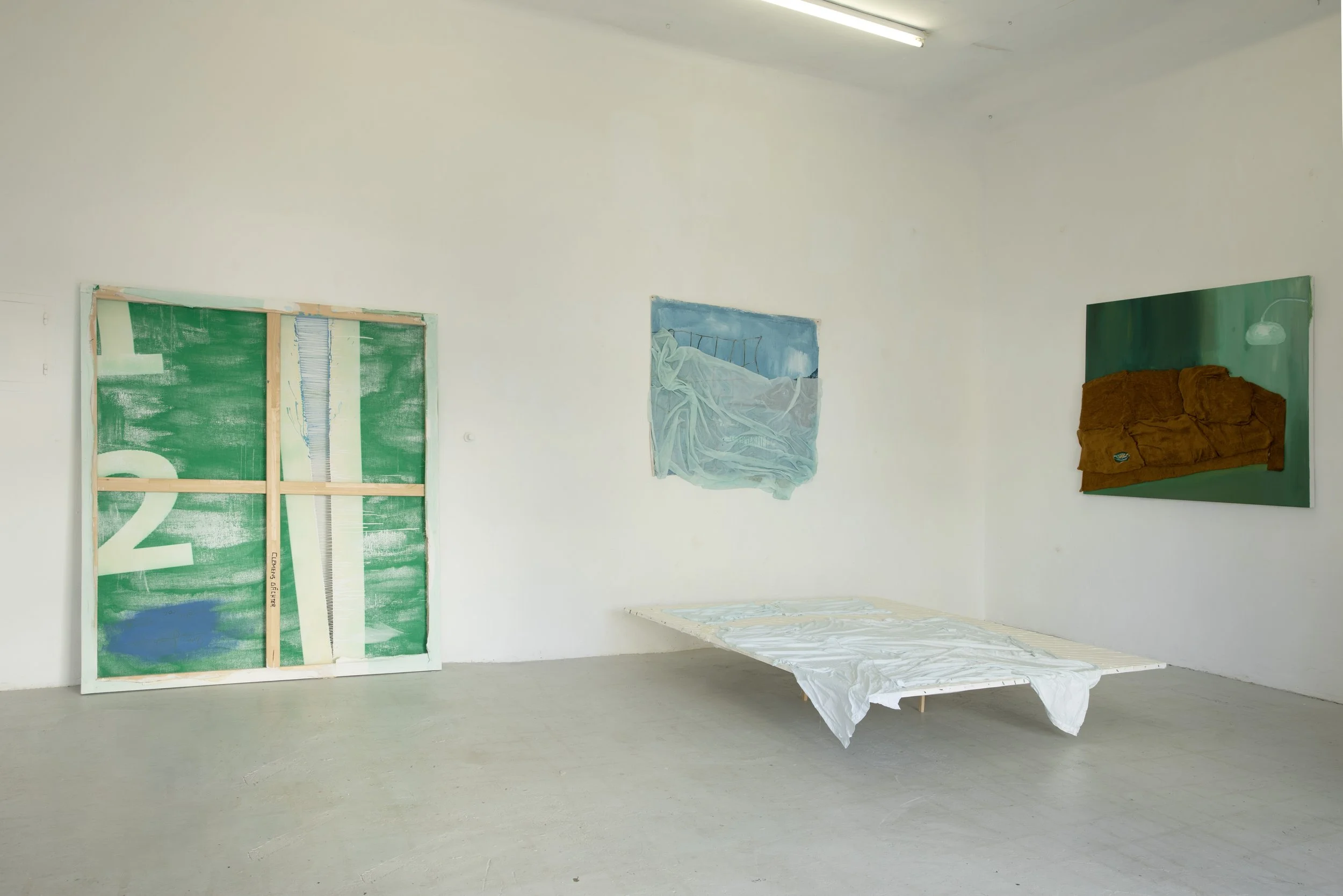 Acryl und Polsterstoff auf Leindwand